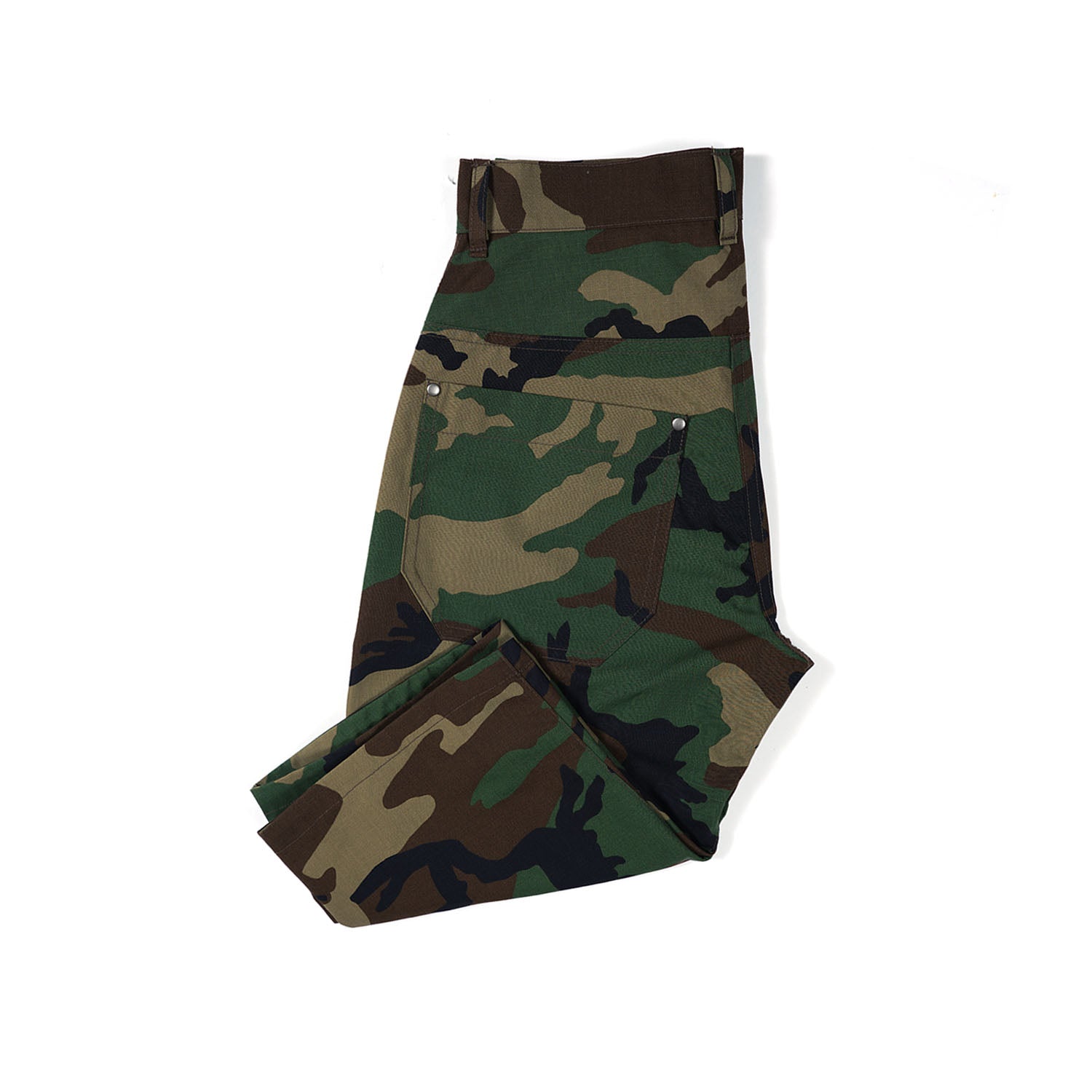 MEDIUM-WEIGHT COTTON CANVAS CAMO DOUBLE KNEE CAPRI PANTS. MID-CALF FIT.