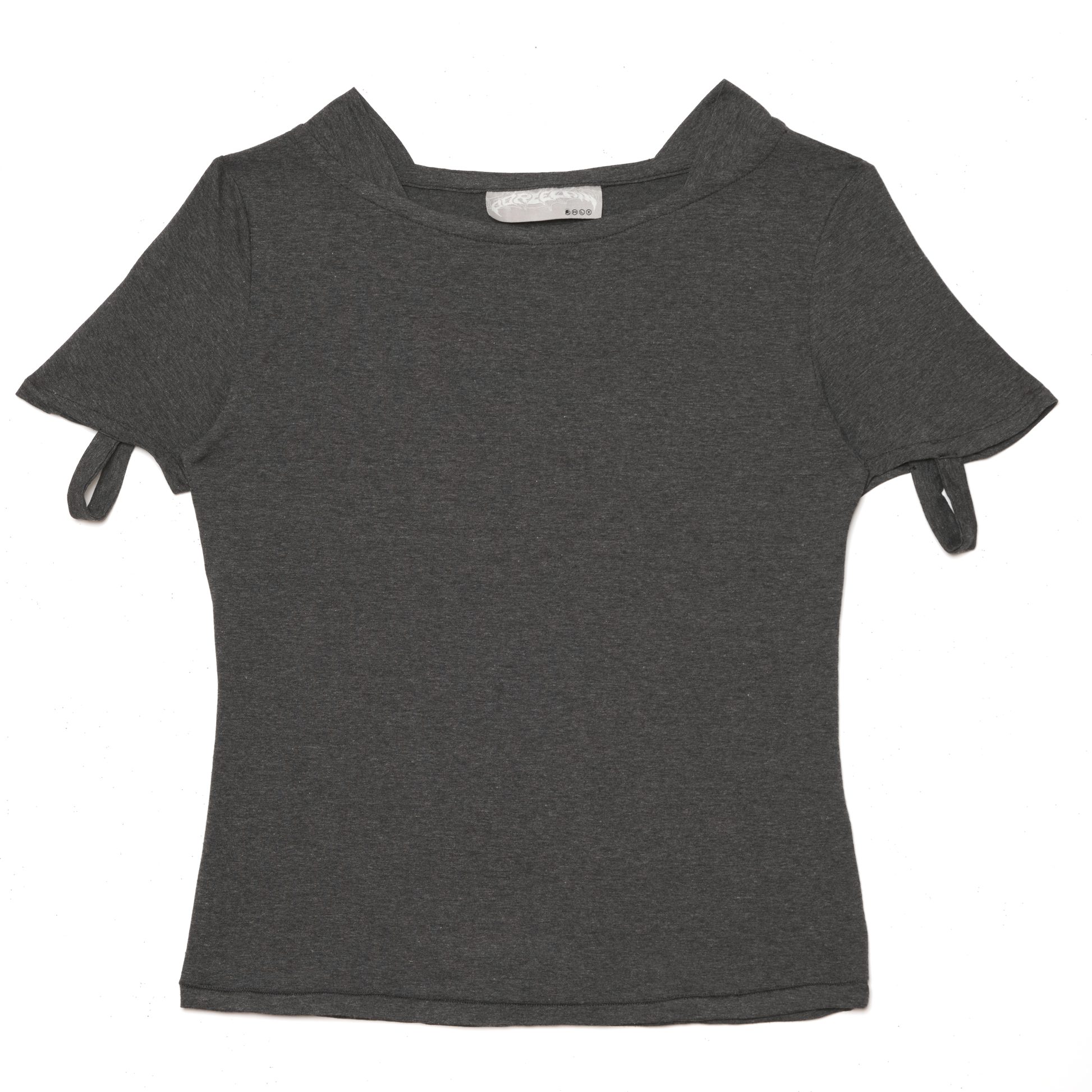 COTTON JERSEY KNIT T-SHIRT, WIDE OPEN NECKLINE WITH PARTIAL COLLAR, CONTOUR FIT AND "ARMOR" SLEEVES. DEAD-STOCK MATERIALS, LIMITED PRODUCTION MADE IN-STUDIO 95% COTTON 5% ELASTANE